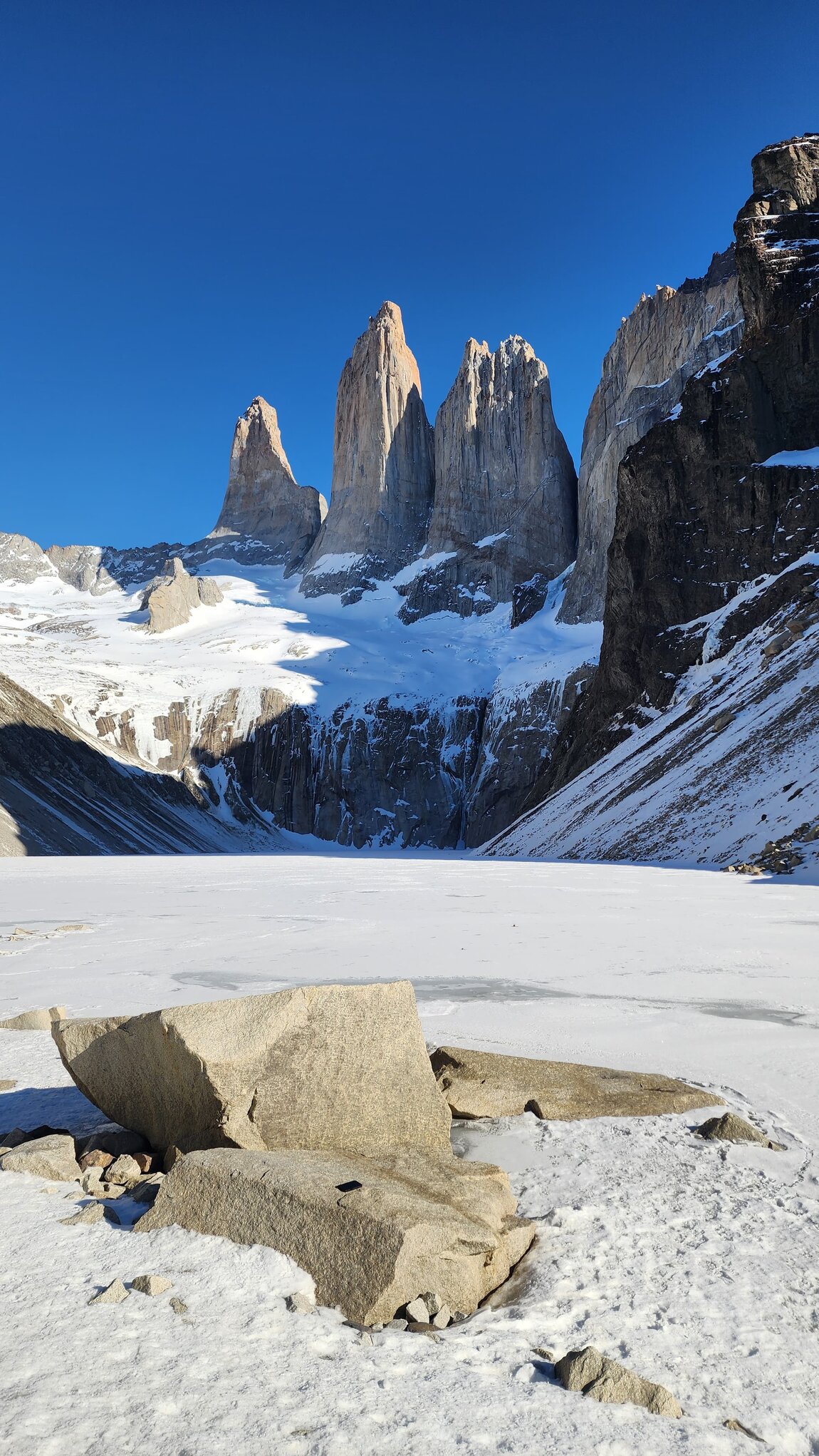 Salida temprana desde Puerto Natales. Ingreso al parque y comienzo del sendero hacia Campamento Chileno, siguiendo el valle del río Ascencio. Tramo intermedio por bosque andino hasta el pie de la morrena. Ascenso final por terreno pedregoso hasta el Mirador Base de las Torres. Tiempo para fotos y snack. Retorno por la misma ruta y regreso a Puerto Natales.